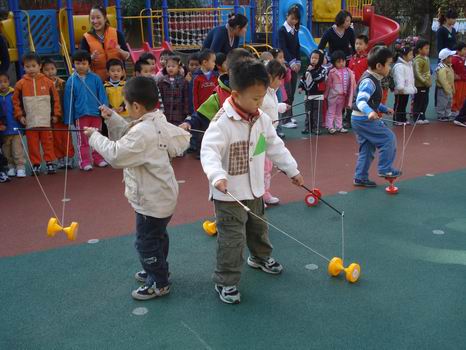 哥哥、姐姐给弟弟、妹妹表演抖空竹