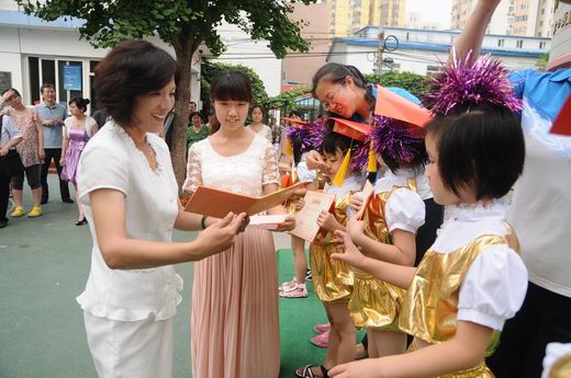 孙园长亲自为每个小朋友颁发毕业证书