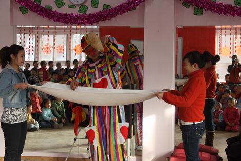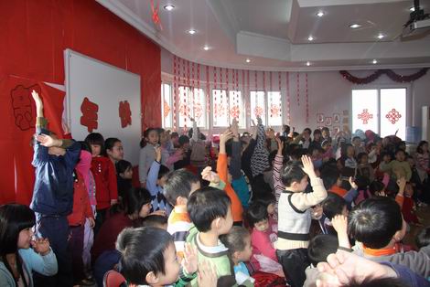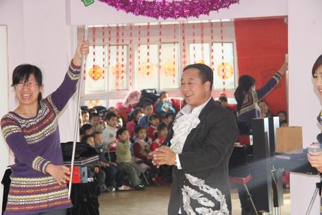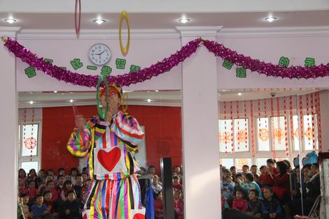 新年来临,幼儿园里张灯结彩,喜气洋洋。魔术大师们分别给日托和全托的孩子们带来精彩的魔术和杂技表演。魔术师们娴熟的技艺让孩子们惊喜、兴奋、好奇……整个演出掌声不断、加油声不止,场面相当热烈、火爆。