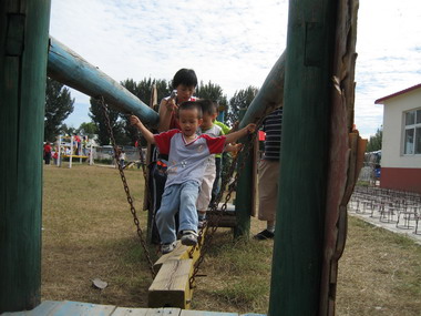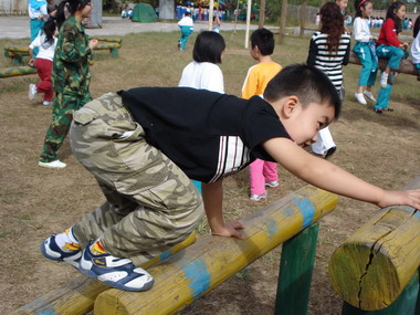 孩子们动手自己制作风车、穿过障碍、冲上山坡,这仅仅是孩子们挑战自我的开始,随后,孩子们进行了多种拓展练习,最让孩子们喜欢的是穿越迷宫,在三个入口处,队伍不由的分成了三组,隔着虚虚实实的栅栏,眼看走出了迷宫,却原来又走到了死路“后队变前队!”随着孩子们的喊声,队伍改变着方向,大家紧密地团结在一起。