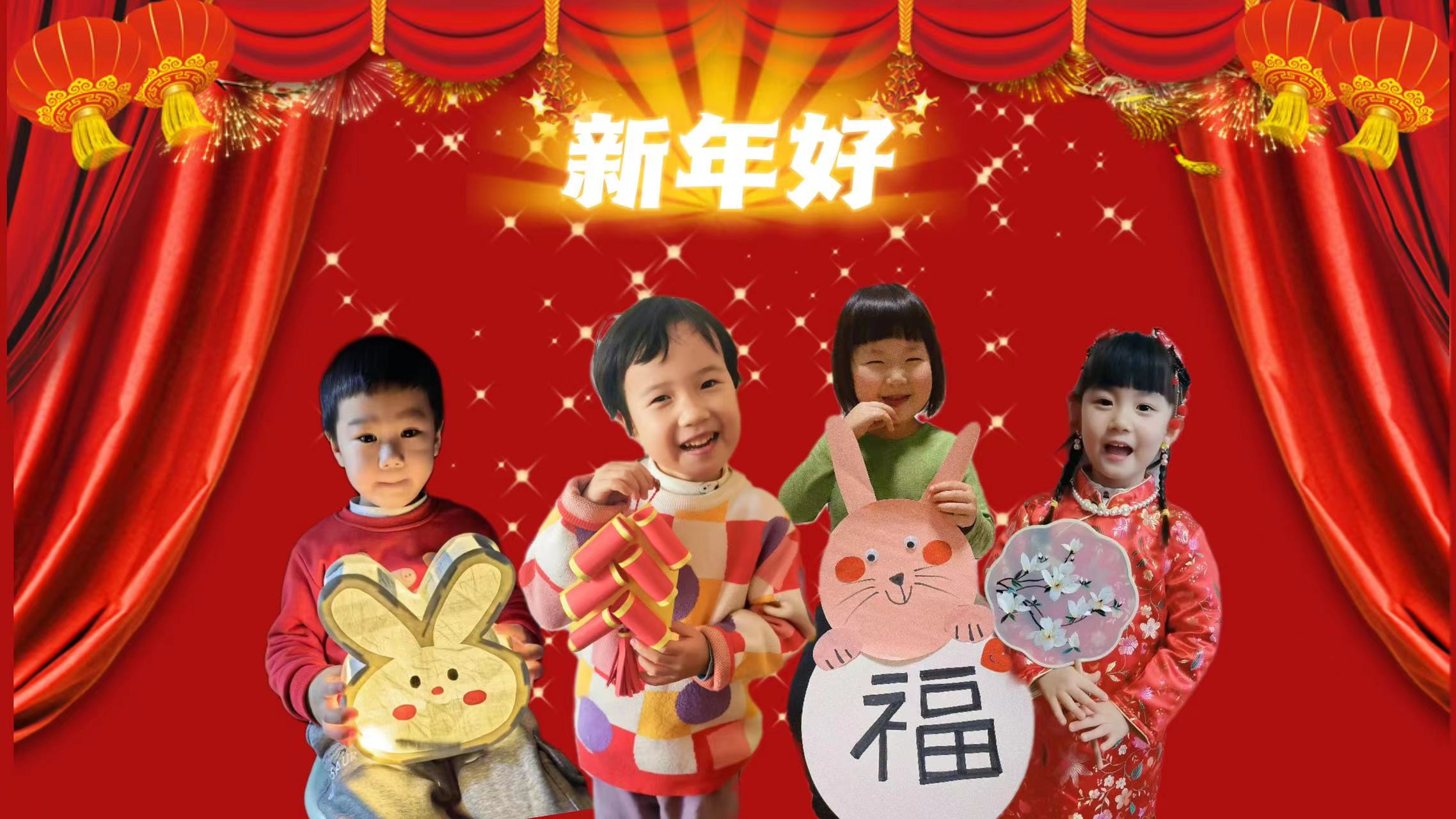 福兔迎春庆祥瑞 牡丹萌娃过新年
