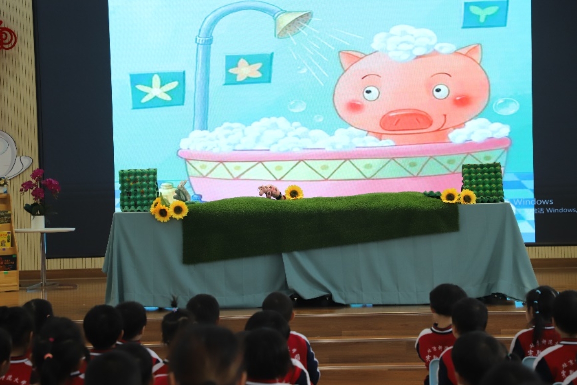 园长妈妈、王老师和杨老师给大家带来了手偶故事表演《不爱洗澡的美美猪》,孩子们看得聚精会神,深深的被故事吸引了。