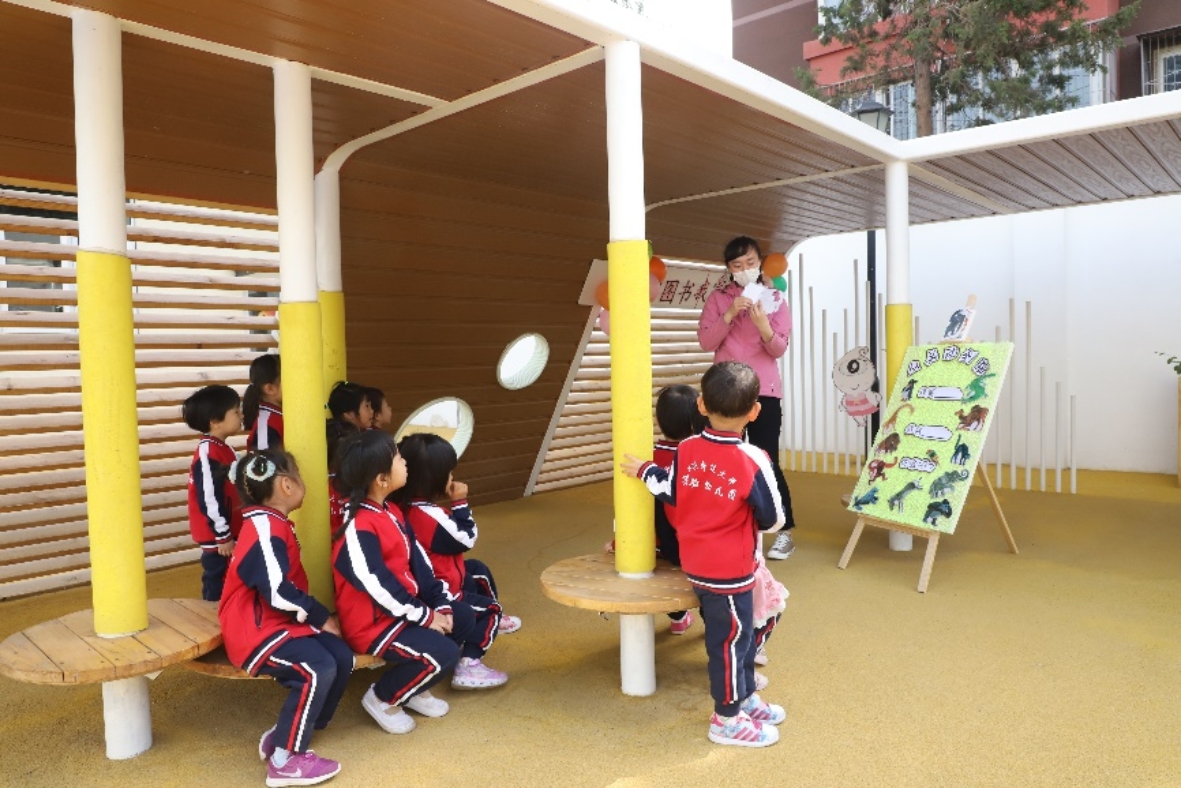 5月10日,天气晴朗,阳光正好,幼儿园开展了户外“阳光悦读”的活动。阳光暖暖的照着,和煦的微风拂过。8个故事,8个阅读空间,不同的讲述方式,孩子们在音乐的指引下参与活动,换场地聆听,徜徉在阳光下,徜徉在美妙的故事里。