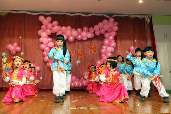孩子、家长、教师齐聚一堂,喜庆祥和迎新年,12月30日,混龄班迎新年大西洋剧场隆重举行。晚会节目围绕民族文化展开,有热情豪迈的蒙古族舞蹈,喜气热闹的汉族歌舞,还有豪爽阳刚的跆拳道表演,激情奔放的世界杯拉拉舞,美丽怡人的藏族舞……无不是一场民族文化盛会!