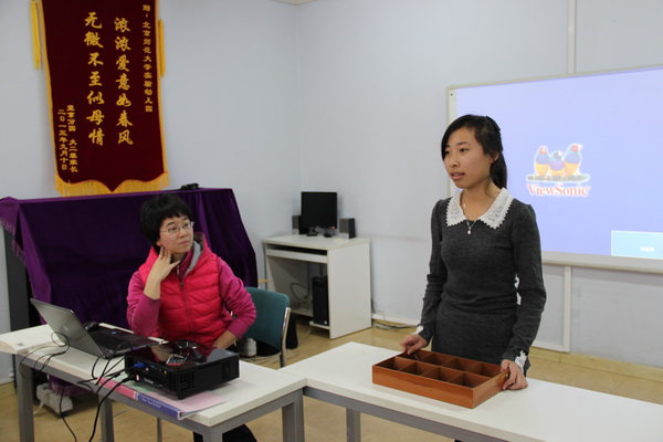 11月29日,望京分园助理和保育员教师对自制玩教具开放性进行了教研。老师们集体分享了《指南》解读中华爱华教授活动区材料的论述,并结合自制玩教具分析了低结构化材料对幼儿操作的开放性,并提出了有益建议。