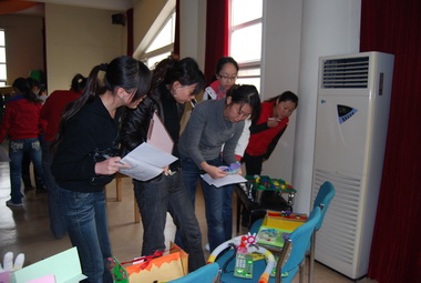 为了争创“市级示范园”工作的需要,进一步丰富幼儿的生活、学习材料,也为了更好的激发教师自制玩教具的积极性与创造性,滚球app展开了“各岗教师自制玩教具”评选活动。教师们根据本班幼儿发展的需要,或创意或精美地制作了90多件“作品”参选,在评选的过程中,进一步明确了自制玩教具的相关经验,更促进了相互的学习。