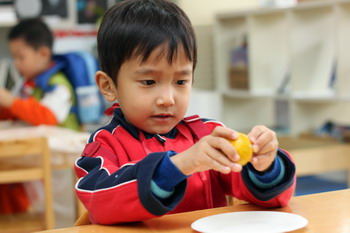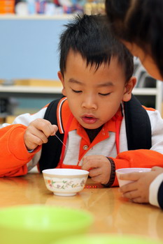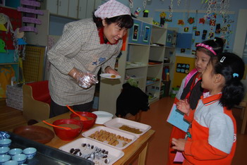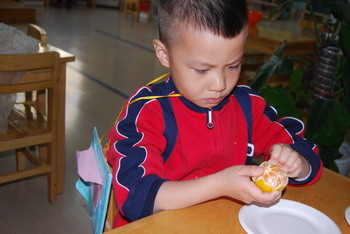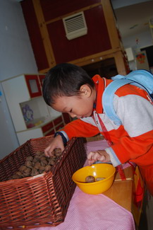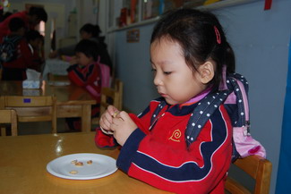按数量取干果 婴小班幼儿自己剥干果品尝