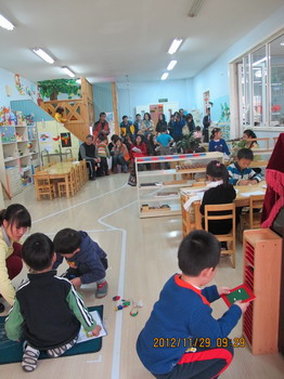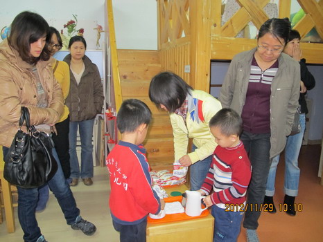 中大、混龄班幼儿家长来园观摩了幼儿的半日活动,看到孩子们活动的井然有序,也情不自禁的参与到孩子们的学习中来。半日观摩后,及时地与教师进行了反馈,融洽了家园共育的理念。