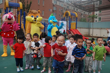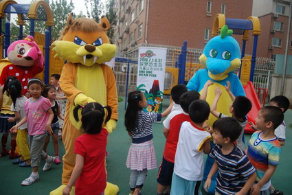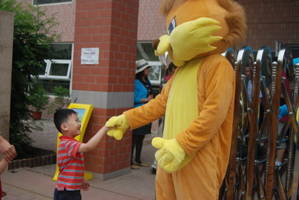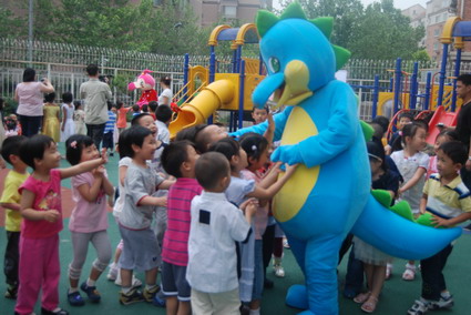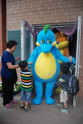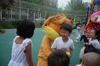 6月1日,小朋友喜爱的恐龙、狮子和大公鸡变成了卡通人物早早地等在幼儿园门口,给小朋友送去第一道节日的祝福,这可让孩子们乐开了怀。之后孩子们又和卡通人物一起玩游戏,最后留下了合影。今天的过节真是高兴啊!