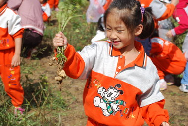 9月26日,望京园组织全体幼儿到大兴采摘。秋高气爽,脚下是平坦的大地,处处有成熟的金黄。教师与幼儿一起认识、观察、发现,并不失时机地进行了户外教育活动,最后才饶有兴致地采摘——拔花生、摘梨、挖红薯,这些沉甸甸的果实让滚球app体验了丰收的喜悦。