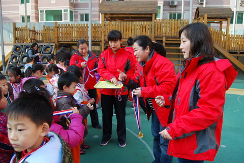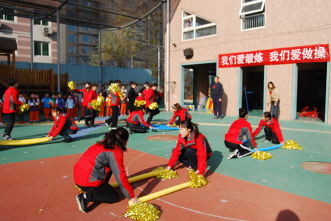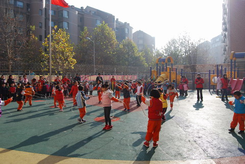 为增强幼儿体质,提高幼儿冬季户外体育活动的质量和兴趣,幼儿园决定继续开展一年一度的冬季体能展示活动。本次活动中,除了有原有的体能展示的环节,还加入了户外“小鬼当家”开放式自主游戏,以快乐游戏为宗旨,强调“我参与,我快乐”,鼓励幼儿积极参与到各项体育活动中去。