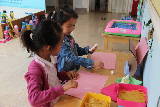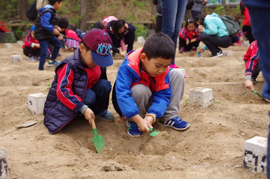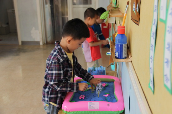 望京分园的开放式主题大厅活动来源于幼儿的经验,并扩展幼儿的经验。在今年的春游活动中,滚球app组织大班幼儿去了周口店、中小班幼儿去了蝴蝶谷,有了亲身体验和直观感受之后,教师将春游中幼儿最感兴趣的活动进行扩展和延伸,将幼儿的已有经验“物化”为有准备的环境,通过“考古游戏”、“探秘蝴蝶谷”等活动区进一步提升幼儿的经验。
