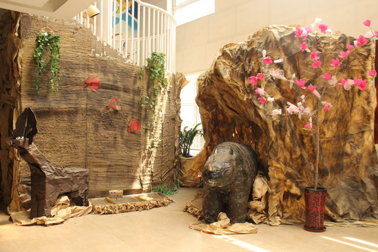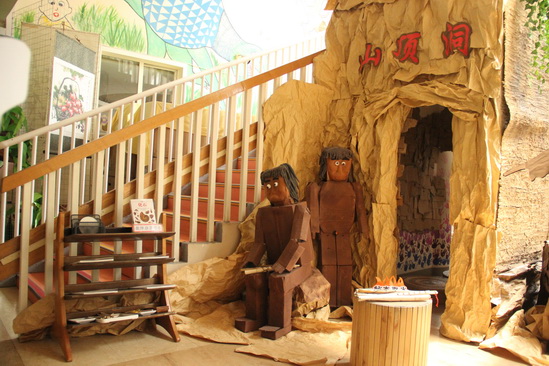 为了发挥幼儿在环境创设中的主体作用,每一次的大厅环境创设中滚球app都鼓励幼儿一起参与,把幼儿在创设环境过程中遇到的问题当做是提升幼儿解决问题能力的“良机”。如在这次创设“山顶洞”环境中,滚球app和孩子一起将泥巴糊在了光滑的墙面上,结果第二天泥巴全部脱落了。看着一天的辛苦付之东流,孩子们都互相打气“别灰心,加油!”经过讨论,第二次滚球app在泥巴里加入了乳胶,可泥巴还是一如既往地掉;第三次滚球app一起询问了幼儿园的维修师傅李老师,李老师给滚球app讲解和演示了泥巴掉的原因,并建议滚球app将泥巴糊在草席上,将草席挂在墙面上。经过努力最后滚球app终于成功了!第二天一大早看着终于上墙了的泥巴,孩子们都特别地激动!