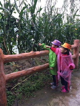 认真地记录 还有新发现,玉米原来长这么高啊!
