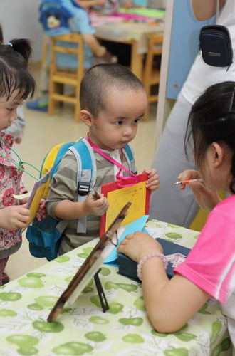 小朋友过节啦!5月28日上午,我园开展了孩子们最喜爱的“六一小鬼当家”活动。早8点45分,所有班级在操场集合,园长和小朋友代表送上节日祝福,全体小朋友齐唱儿童节歌曲,拉开了欢庆节日的序幕。之后一个半小时的“小鬼当家”游戏可以用三个词来形容,就是热闹、高兴、满足。每个小朋友还收到了一份幼儿园准备的特别的儿童节礼物。 此外,北顺房地产公司也给小朋友送来了玩教具,祝孩子们儿童节快乐。