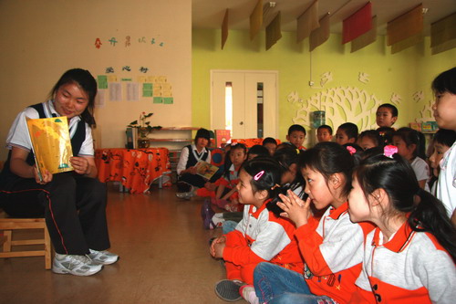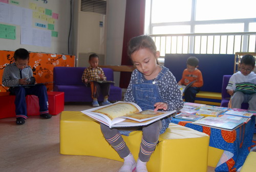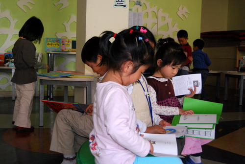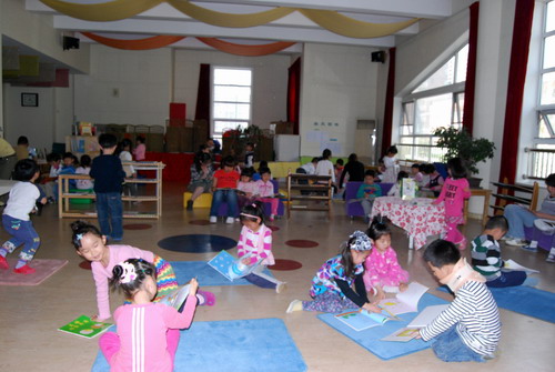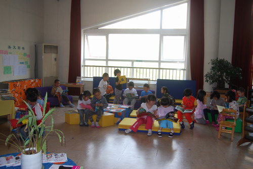 教师诵读后,孩子们的自主阅读……