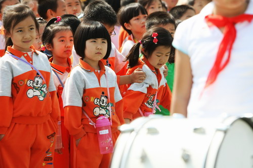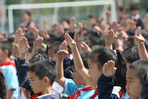 特别的5月12日,特别的升旗,孩子们和鲜艳的五星红旗、红领巾一起,静静地祝福。