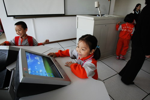 电脑室:“我也来试试!”