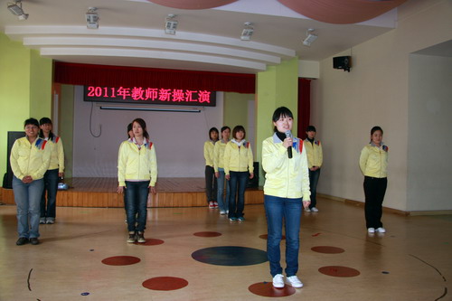 每学年的下半学期,幼儿户外间操将要加入器械操的环节,为此,创编幼儿器械操成为开学初的重点工作之一。上学期末教师们以年级组为单位提前挑选音乐,并初步设想动作。新学期一开始,教师们马不停蹄进行动作编排和最后的调整统合,于2月23日,开展了全园教师新操汇演。