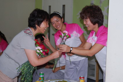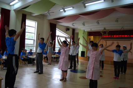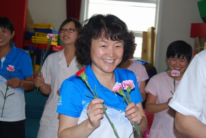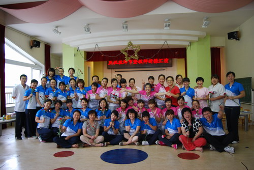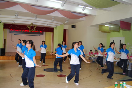 中大班教师会操表演 婴小班教师会操表演 混龄班教师会操表演 黄园长、徐园长参与婴小班自选动作操表演 后勤老师学习基本体操 新教师表演健美操 活动最后,由徐园长、王主任和徐主任为各位教职工献上鲜花,所有教职员工合影留念。 园长、主任送上鲜花 节日快乐! |
