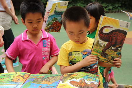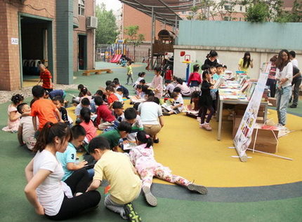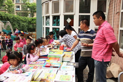 2013年5月17日下午,望京分园组织了师生、亲子逛书市活动,大量优秀童书,让孩子们大饱眼福,他们有的找到自己喜欢的马上看起来,有的向叔叔阿姨询问着“这本书多少钱?”,有的看完一本换一本,还有的和小朋友们指着书说说笑笑。书香伴童年,愿书成为孩子们永远的朋友。
