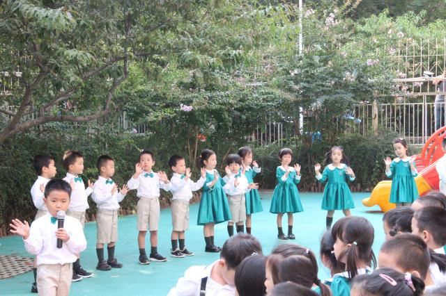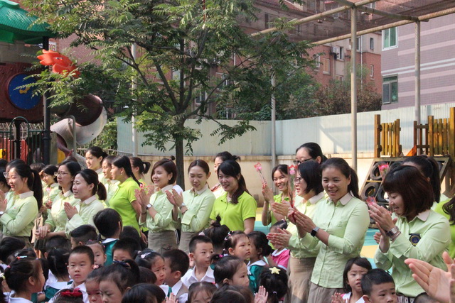 升旗仪式后,孩子们用歌声和鲜花表达了对老师的感谢
