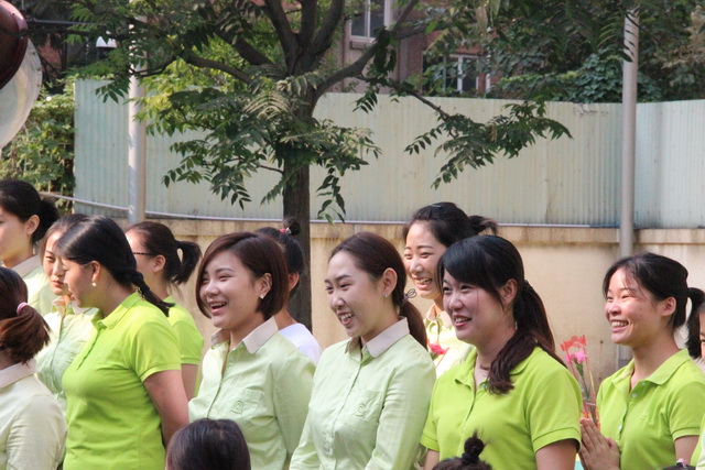 黄珊总园长为教学班及后勤各岗教师送上节日祝福与鲜花