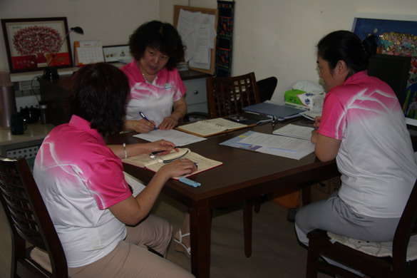 徐园长在和徐主任、王主任研讨新学期的工作