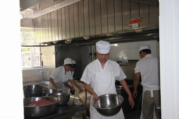 厨房的师傅们在给小朋友们做美味的饭菜