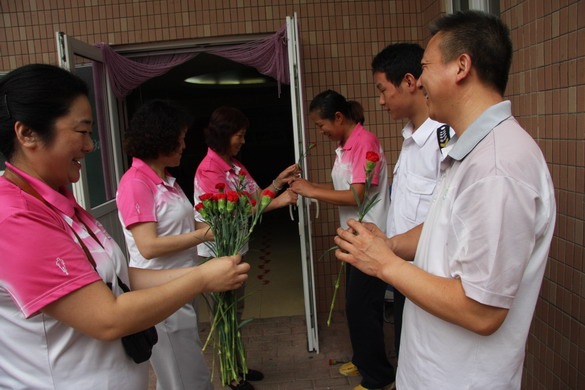 新教师向老教师献花