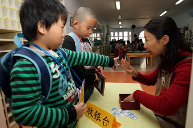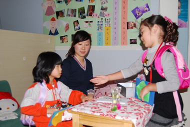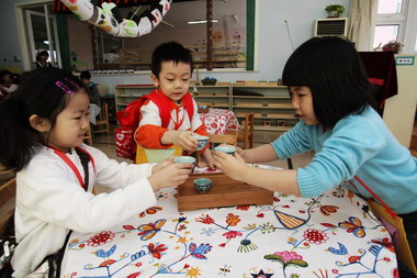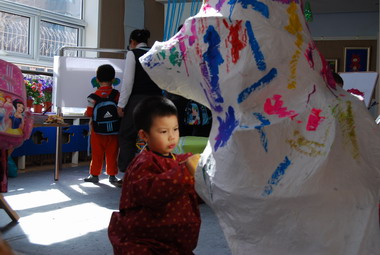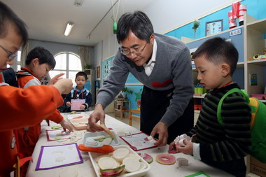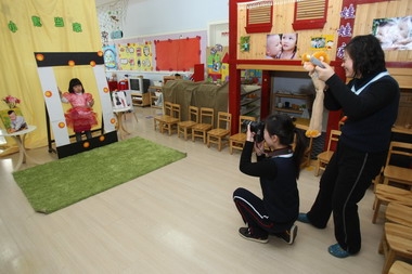 (当天班里的中国妈妈和韩国妈妈担当“妈妈点心屋”的大厨,为全园孩子做料理)