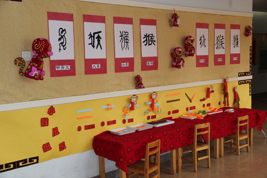 2015年12月18日-21日,滚球app以老北京地域特色为切入点,结合猴年的新年元素,创设了“猴趣满园,喜迎新年”的开放式主题大厅活动。根据楼体结构特点,滚球app在大厅入口制作了立体的北京四合院牌楼和美食一条街,从腊月二十三到大年初一各色美食玲琅满目;旋转楼梯下的小屋变成了家里的火炕,孩子们可以围坐在一起热热闹闹地吃年夜饭;大厅中央创设了春节民俗艺术体验区,印年画、做灯笼、剪纸、扎中国结、做花馍感受红红火火地中国年;主展版以“猴趣满园”为主题,创设中渗透了猴年生肖的剪纸故事、西游记的刮画、各种形态的猴趣剪纸、猴字的发展演变,充分体现猴年生肖年的民俗与文化,整个大厅具有很强的感染力,为幼儿感受新年氛围增添了无限的想象和乐趣。