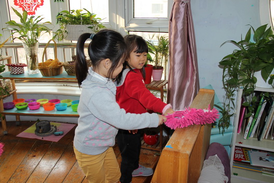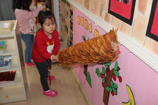 2015年12月23日,孩子们精心准备了各种打扫用具,在自己班上忙前忙后,把自己班级打扫的焕然一新,干干净净地迎新春。新年民俗“扫房子”的活动让幼儿既体验了劳动的快乐,也体验了迎新年的真实含义。