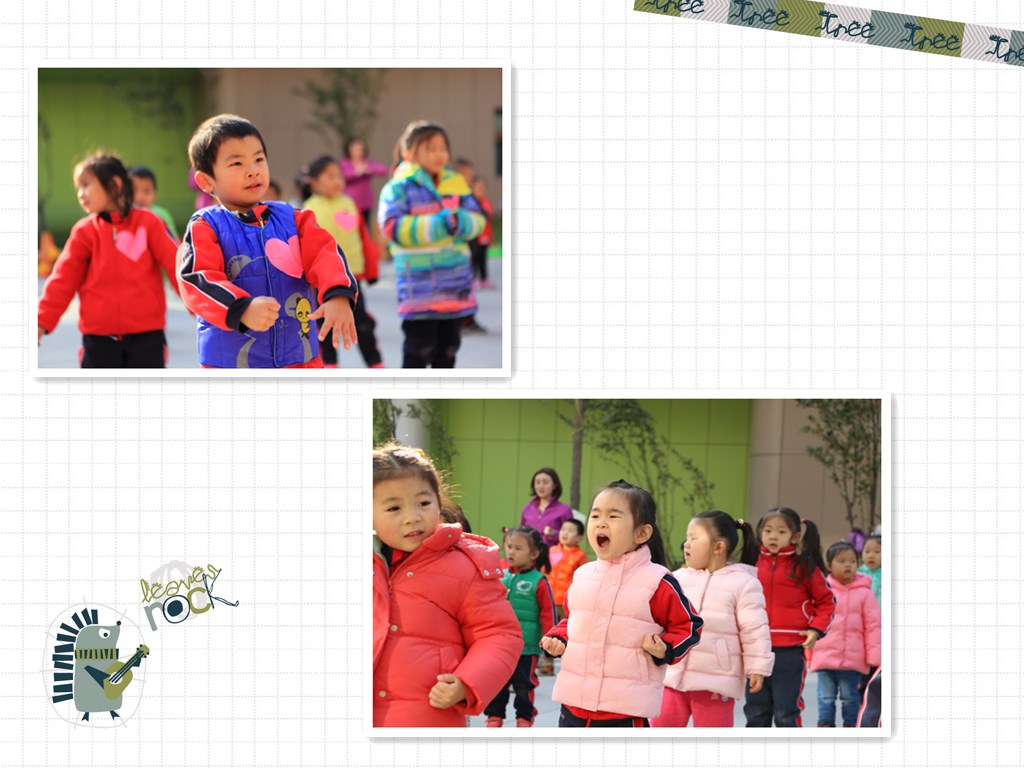 伴着和煦的阳光,所有小朋友们在操场集合,小朋友们响亮地喊出口号:爱运动,爱挑战,我自信,我健康。