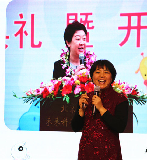 董园长介绍未来一幼的发展历程:“蒙养百年,开启未来”。