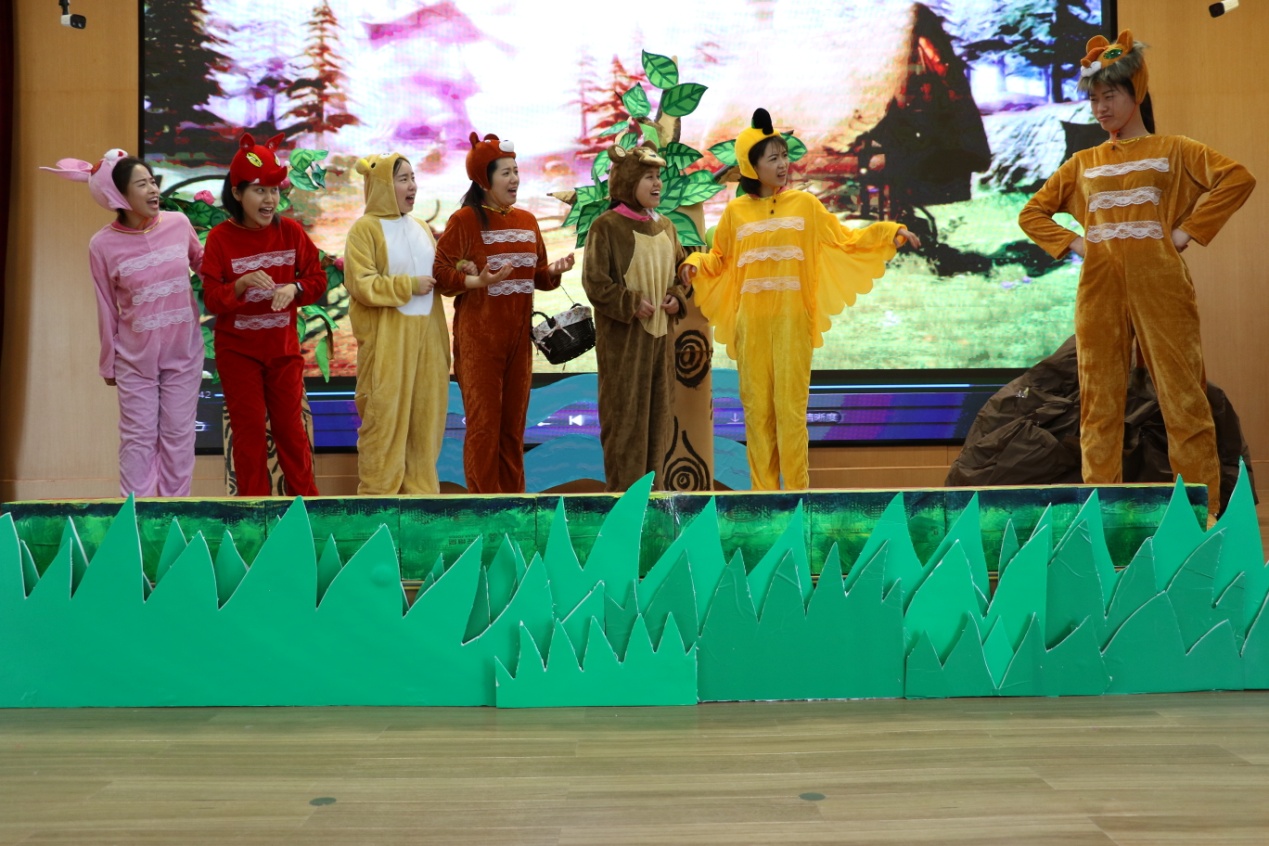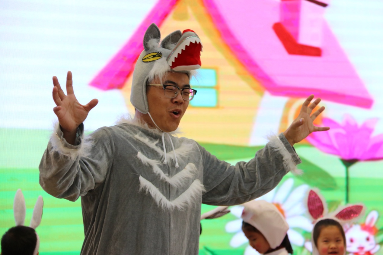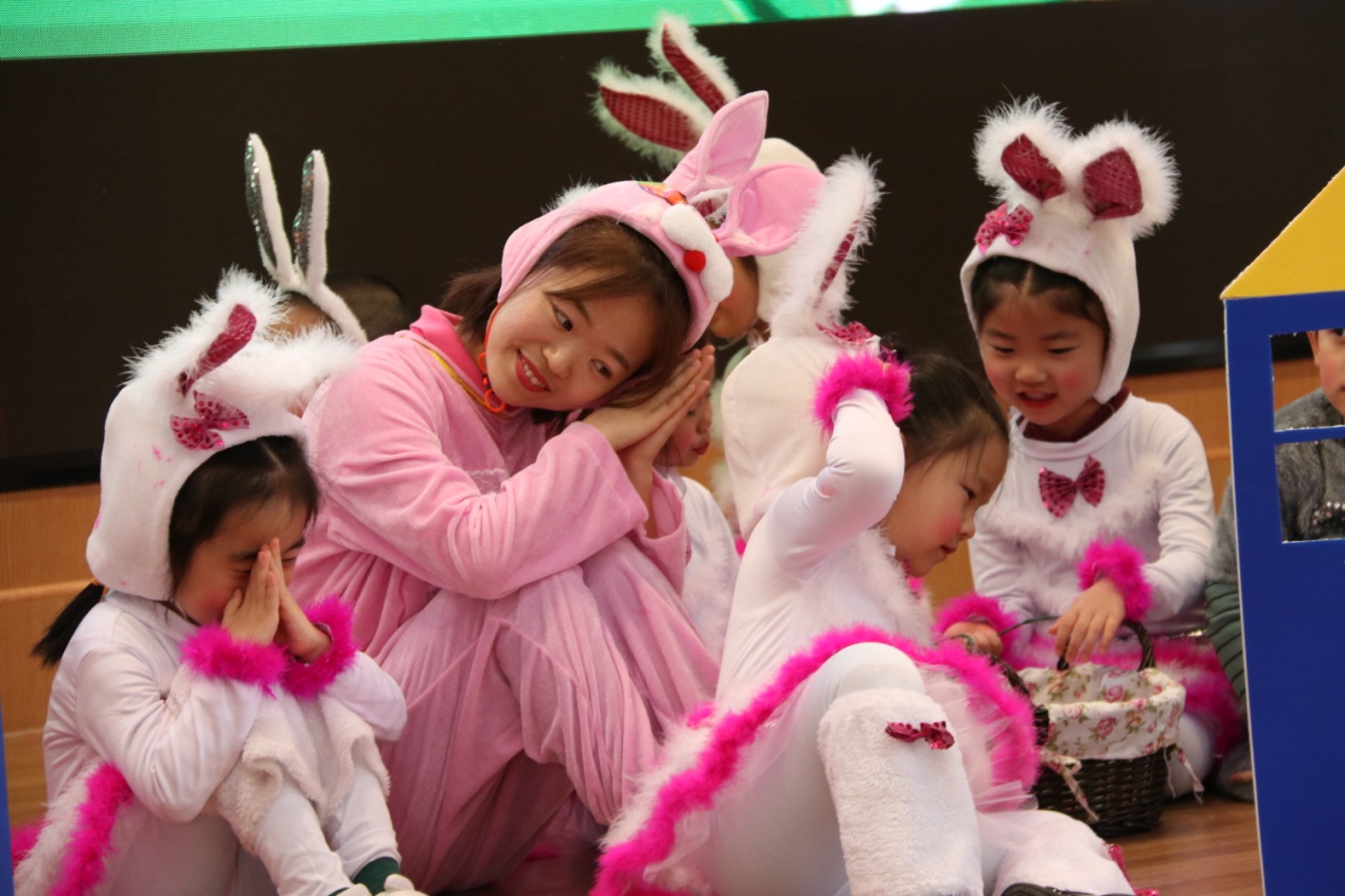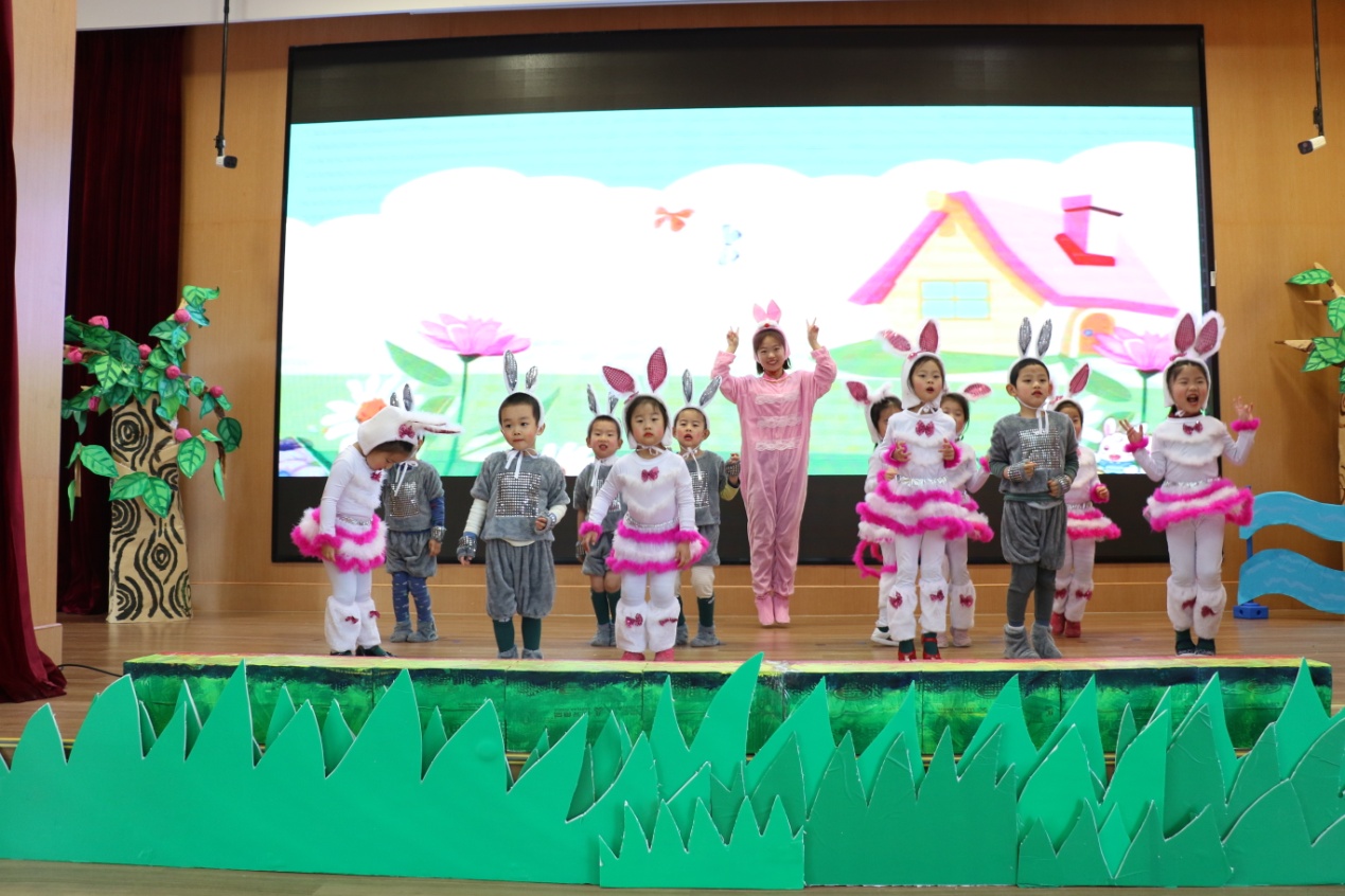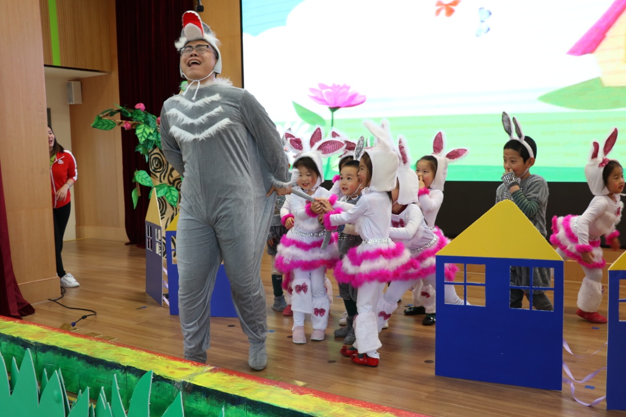 孩子们最期待的故事表演开始啦,这次开幕式中班小朋友和老师准备了三个精彩的故事表演给大家,首先登场的是中二班的故事表演《小兔子乖乖》,小兔子们智斗大灰狼的精彩故事一下就吸引了小观众们。