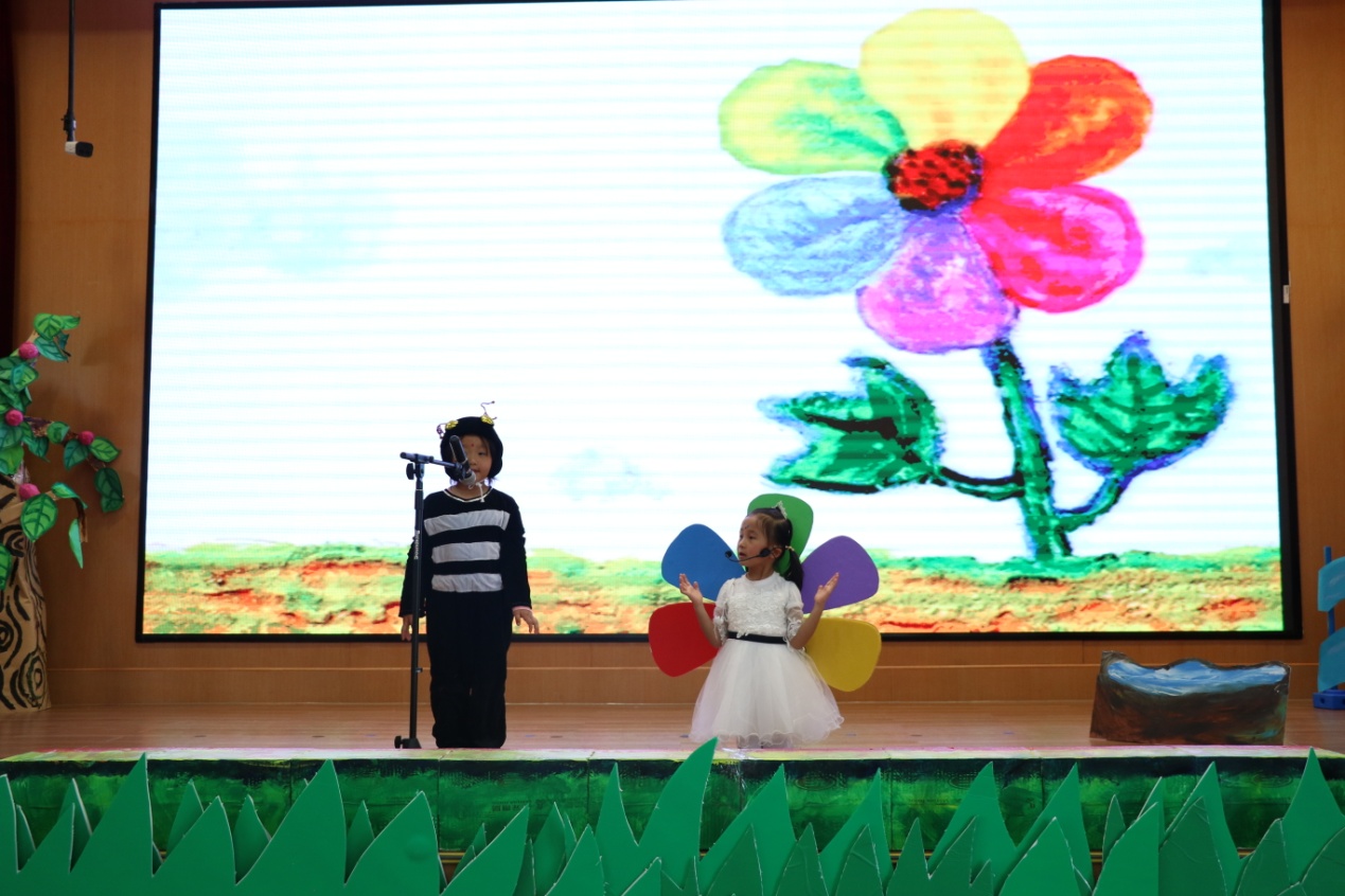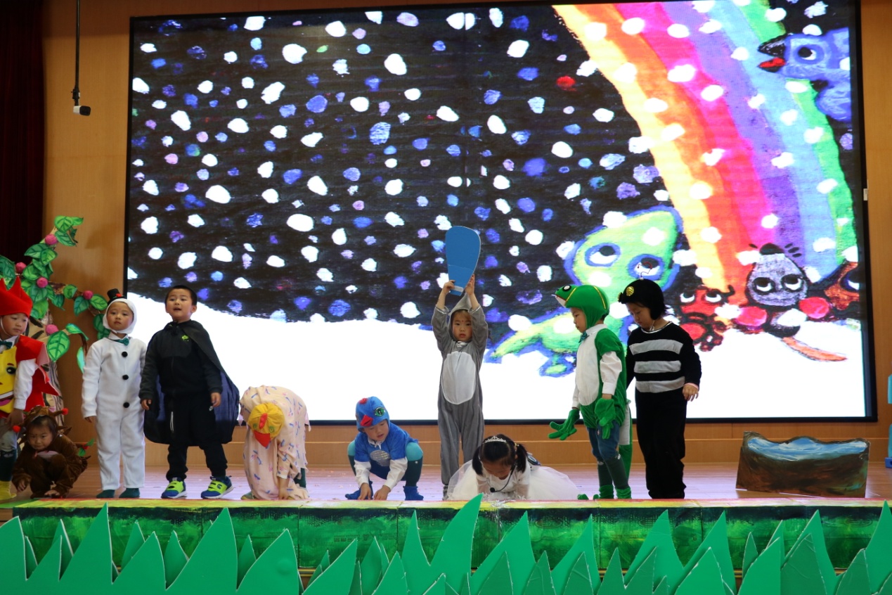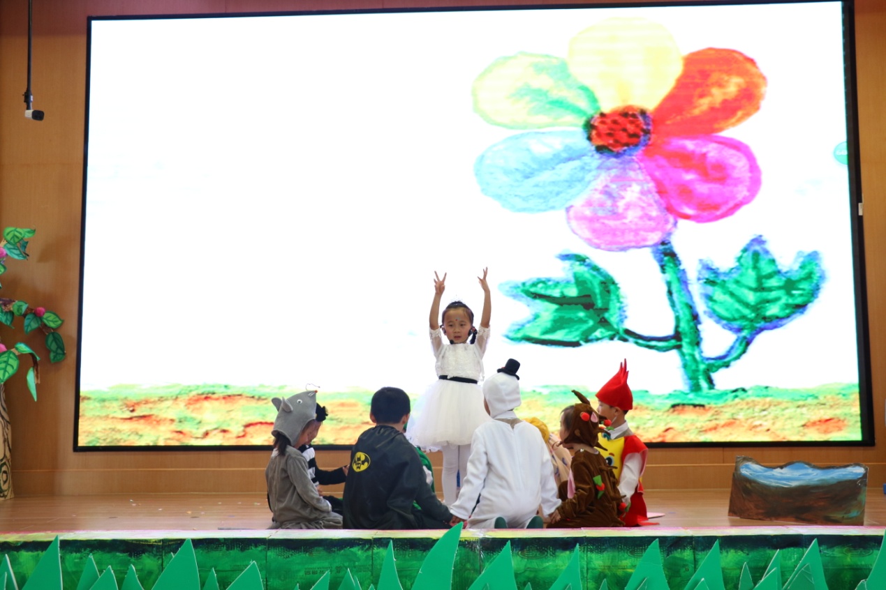 一朵彩虹色的花,一段温暖而又甜美的故事,彩虹色的花用她的花瓣达成了小动物们五彩斑斓的心愿和梦想,她传递的是分享,是爱,是温暖滚球app每个人的力量,中一班小朋友带来故事表演《彩虹色的花》。