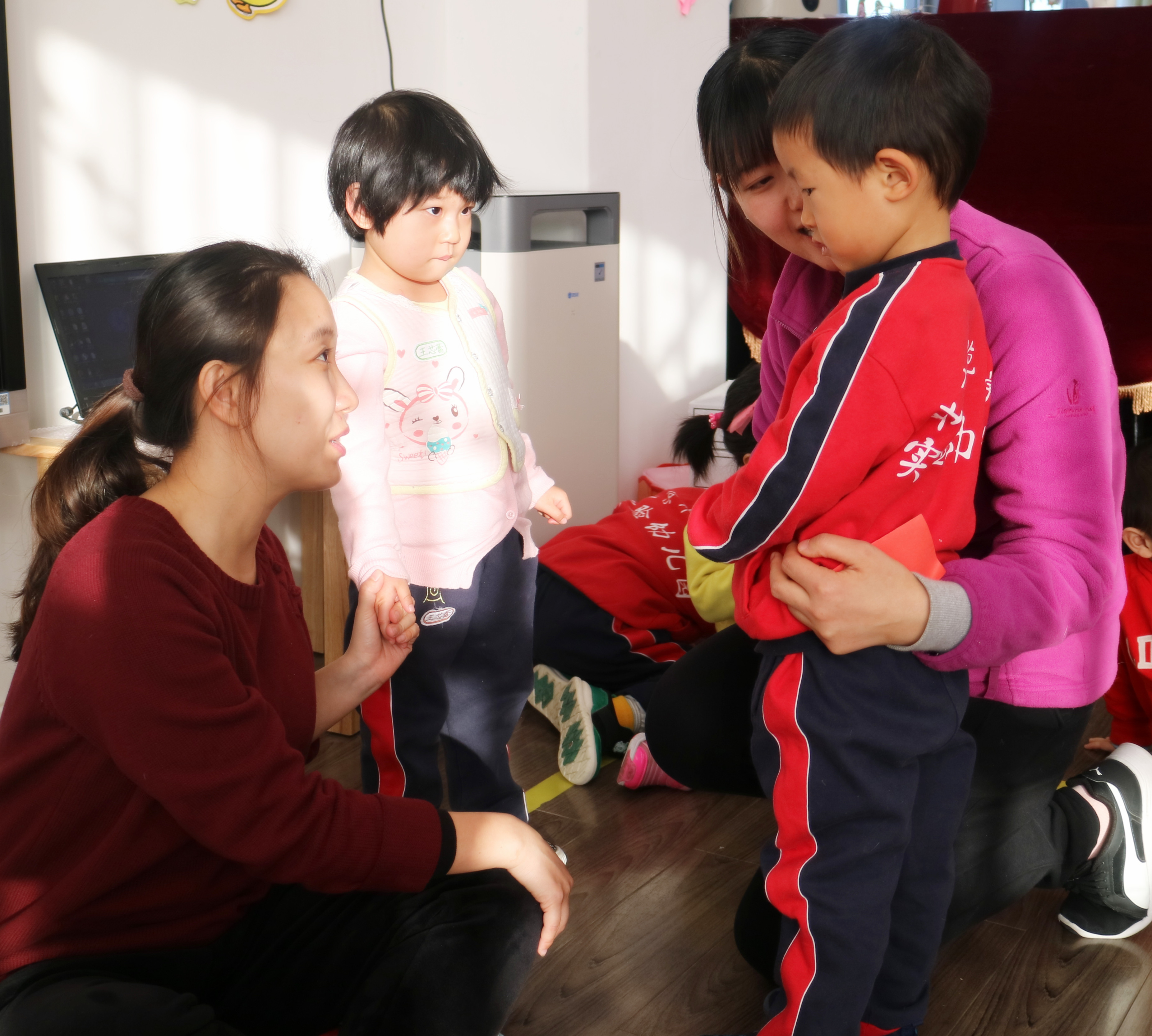 “嘿,你好,我是小一班的。咱俩做好朋友吧!”