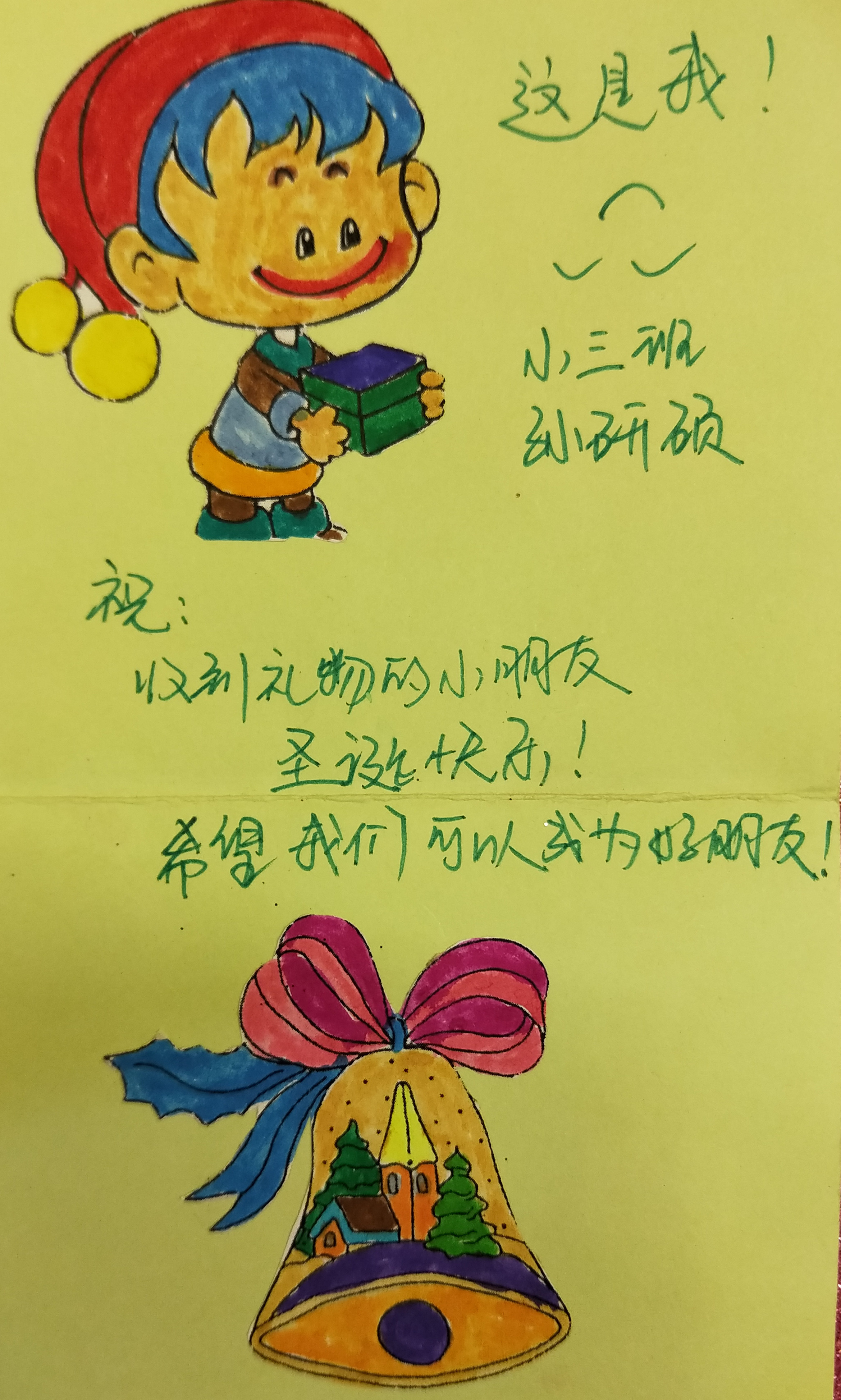 圣诞礼物漂流的活动结束了,小朋友不仅收获了一份心仪的礼物,也从最简单的拥抱、问好、自我介绍开始学会了结交新朋友的方法。在这个活动中,小朋友的语言表达能力提高了,跟新朋友的交流也变得更加积极主动,由一对好朋友的认识升级到班级之间的互相认识,小朋友交友的范围大大扩展,交往的能力的得到提升。这次的活动成为小朋友在这个冬天温暖的体验,情牵你我,爱传大家,美丽的友谊之花尽情绽放!