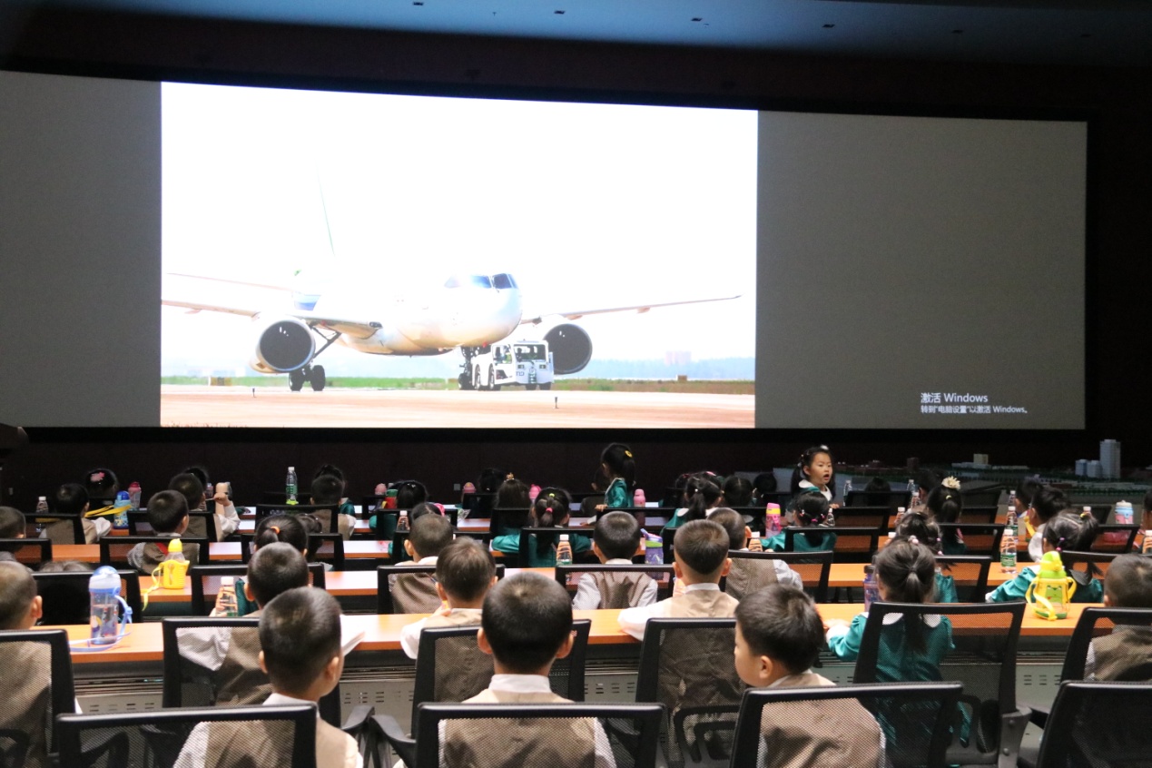 小朋友们在认真观看《C919大型客机首飞记录》,看到飞机准备起飞时,忍不住一起倒计时、鼓掌!民族自豪感油然而生:大飞机真厉害!中国了不起!