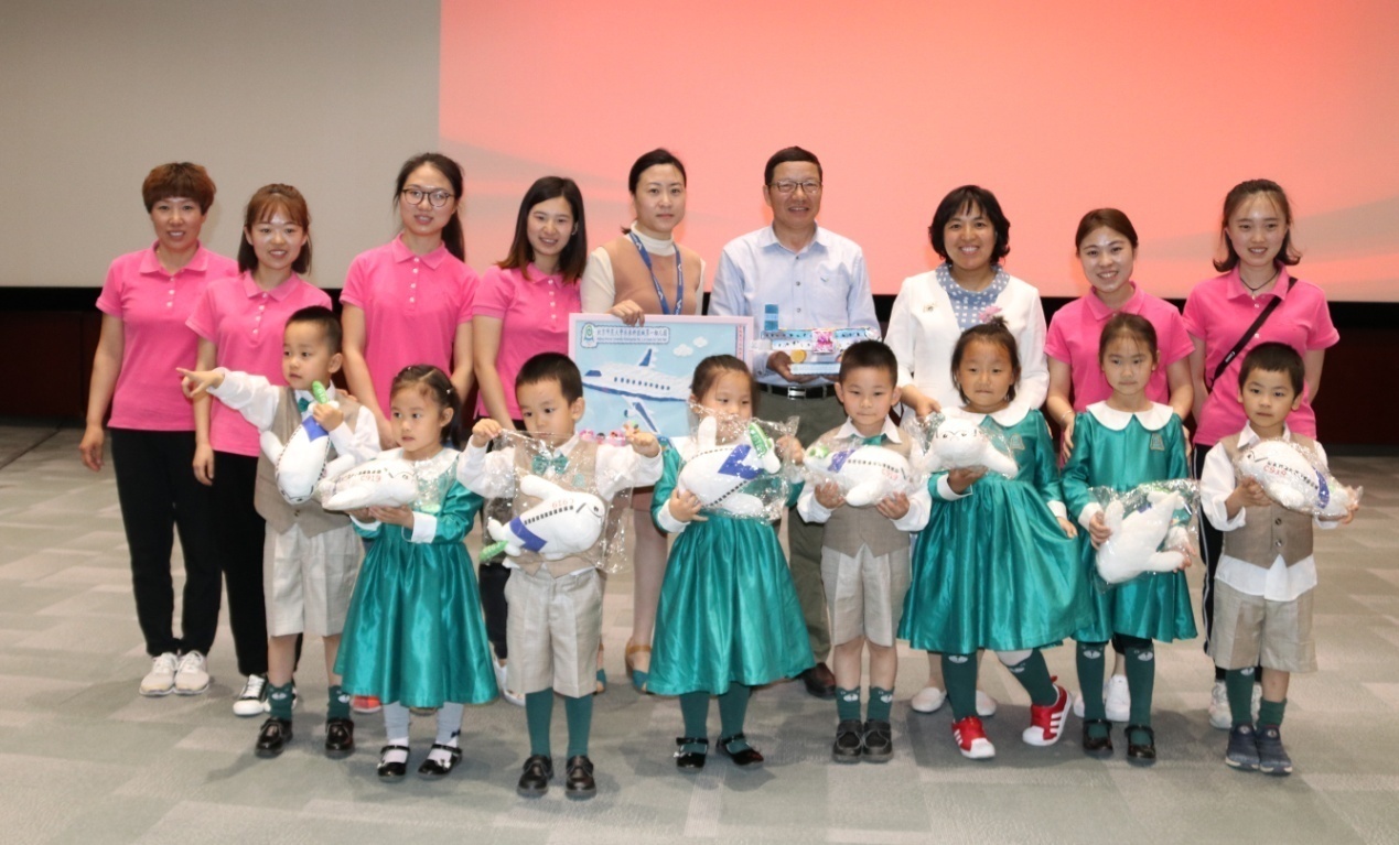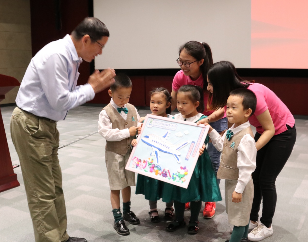 谢谢贺爷爷请滚球app参观这么神奇的地方,送给您中二班小朋友制作的C919飞机。