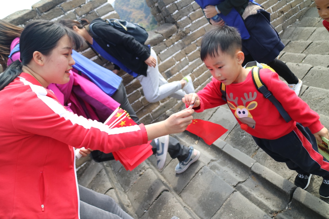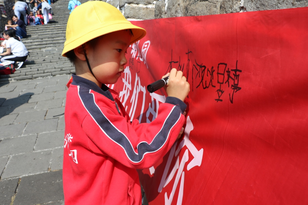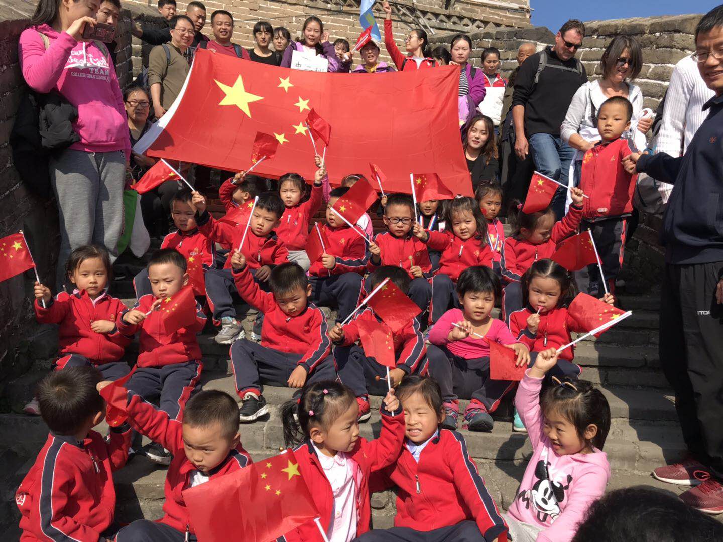 小朋友们问鼎长城,在高高城墙上齐唱国歌,爱国主义的种子在小朋友心底悄然发芽。