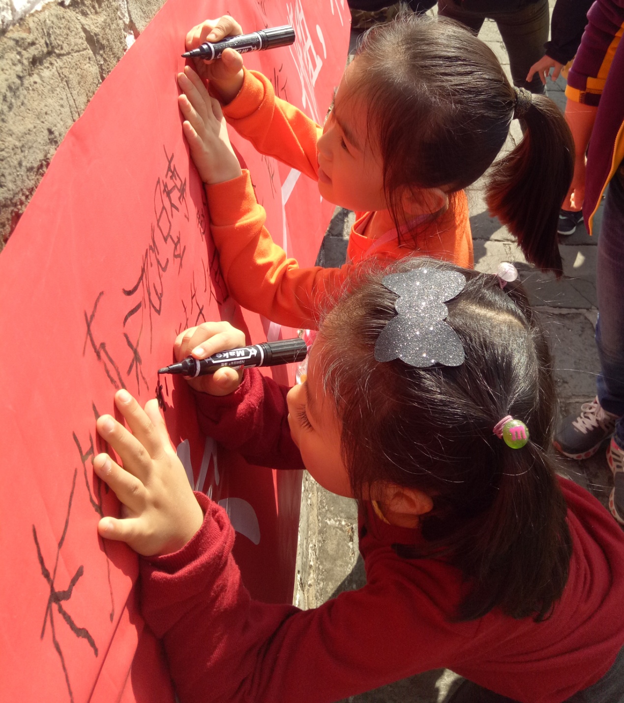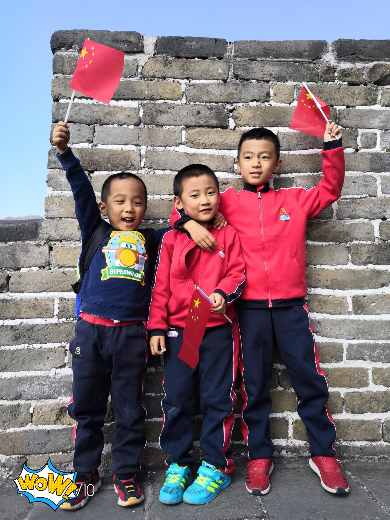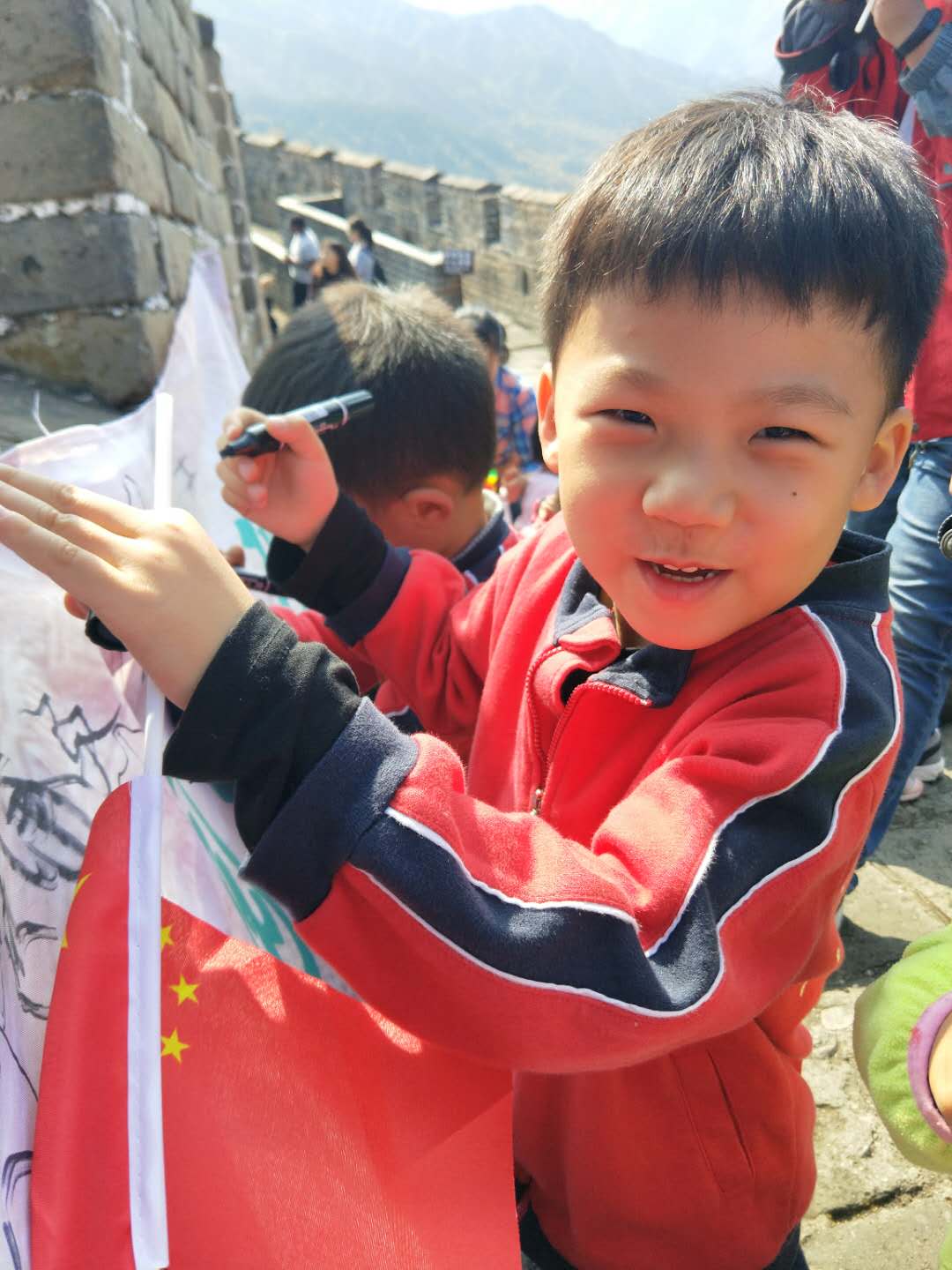 小朋友们问鼎长城,在高高城墙上齐唱国歌,爱国主义的种子在小朋友心底悄然发芽。