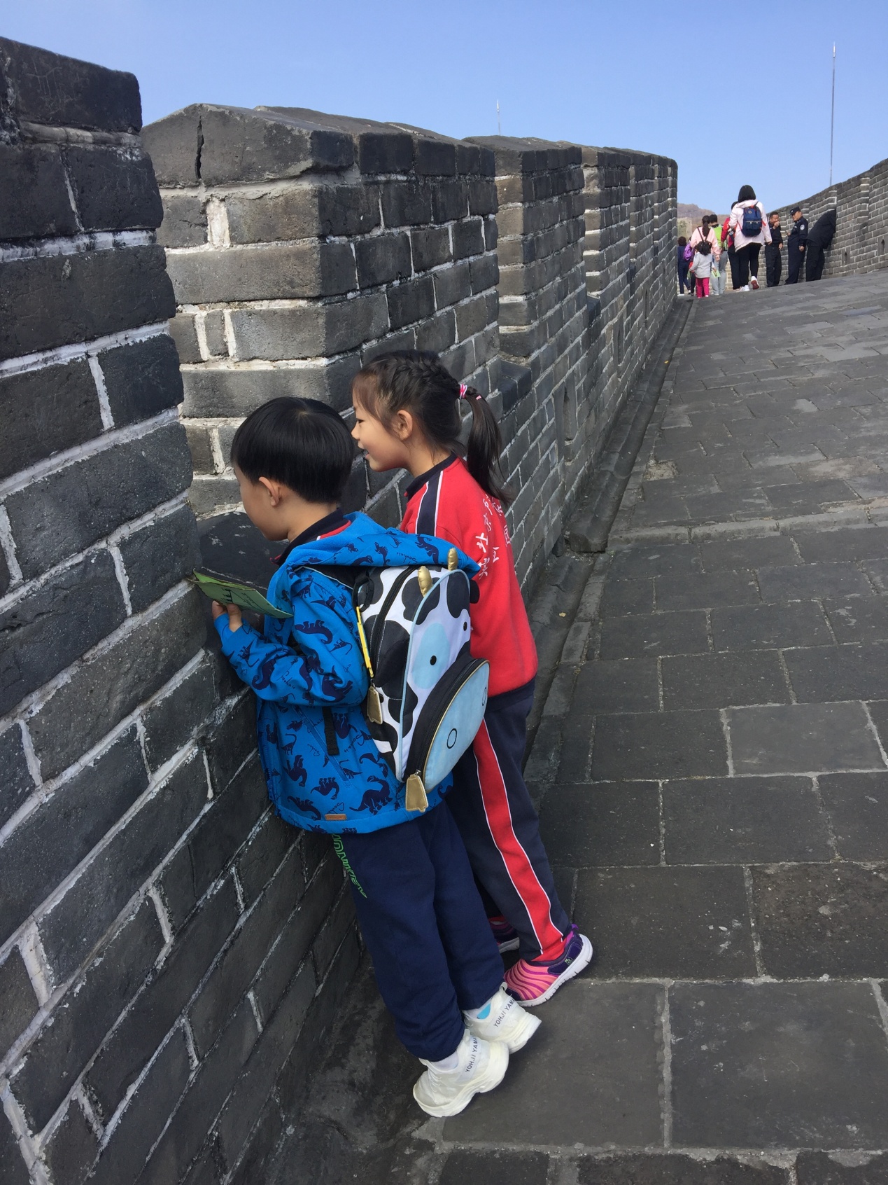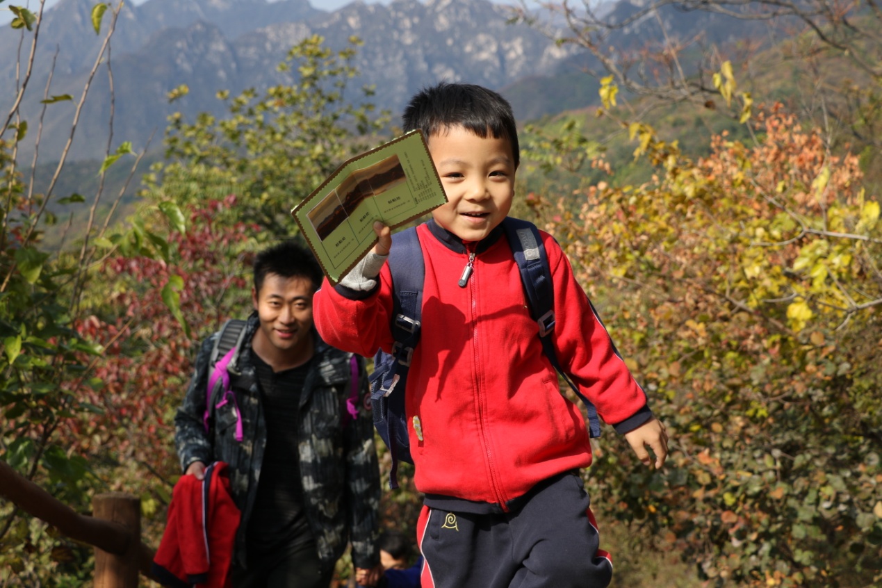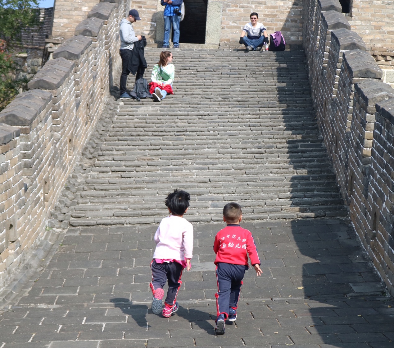 奔跑在长城古老的花岗条石路上,小朋友们一刻不停地朝着下一站前进。