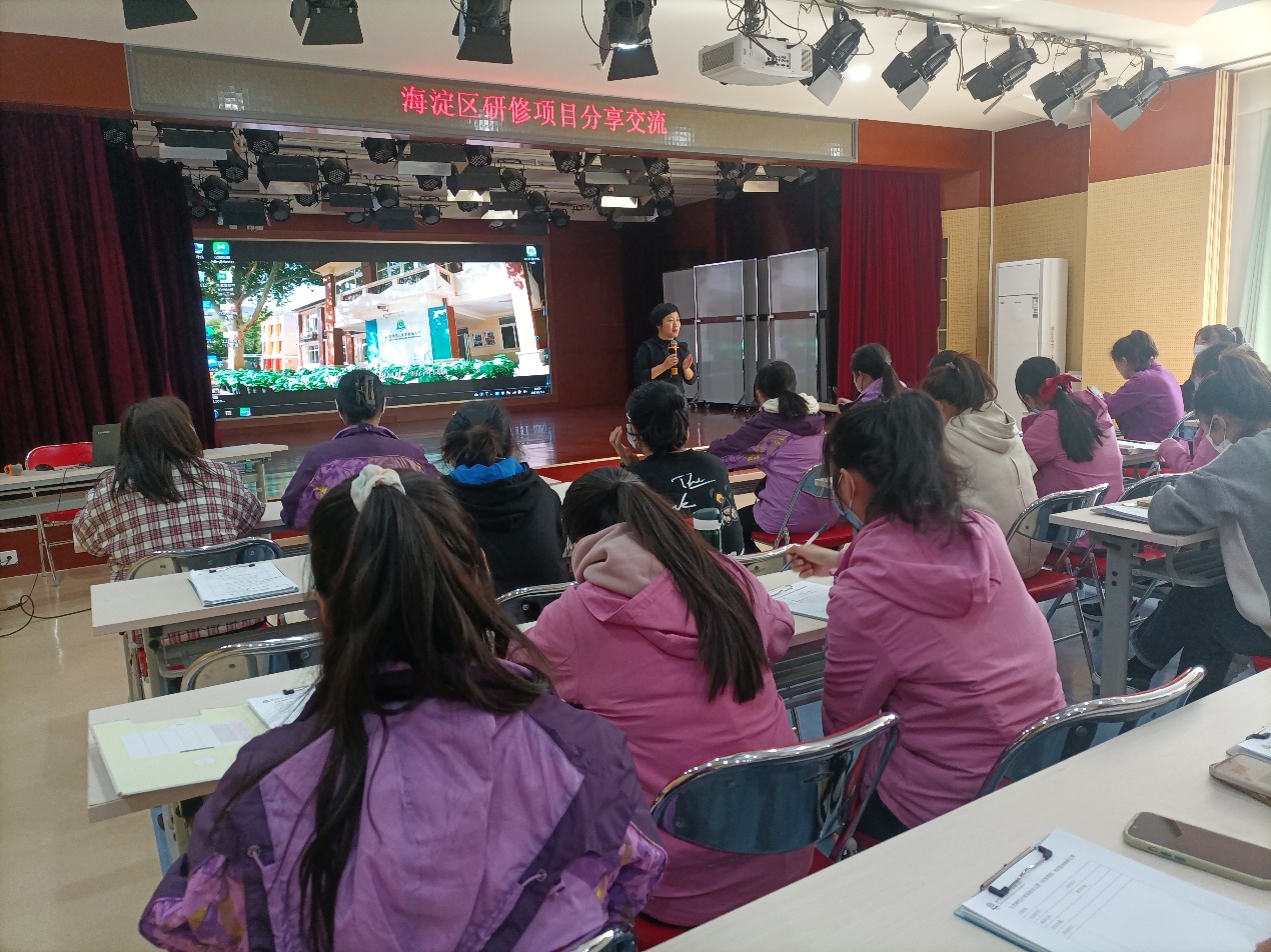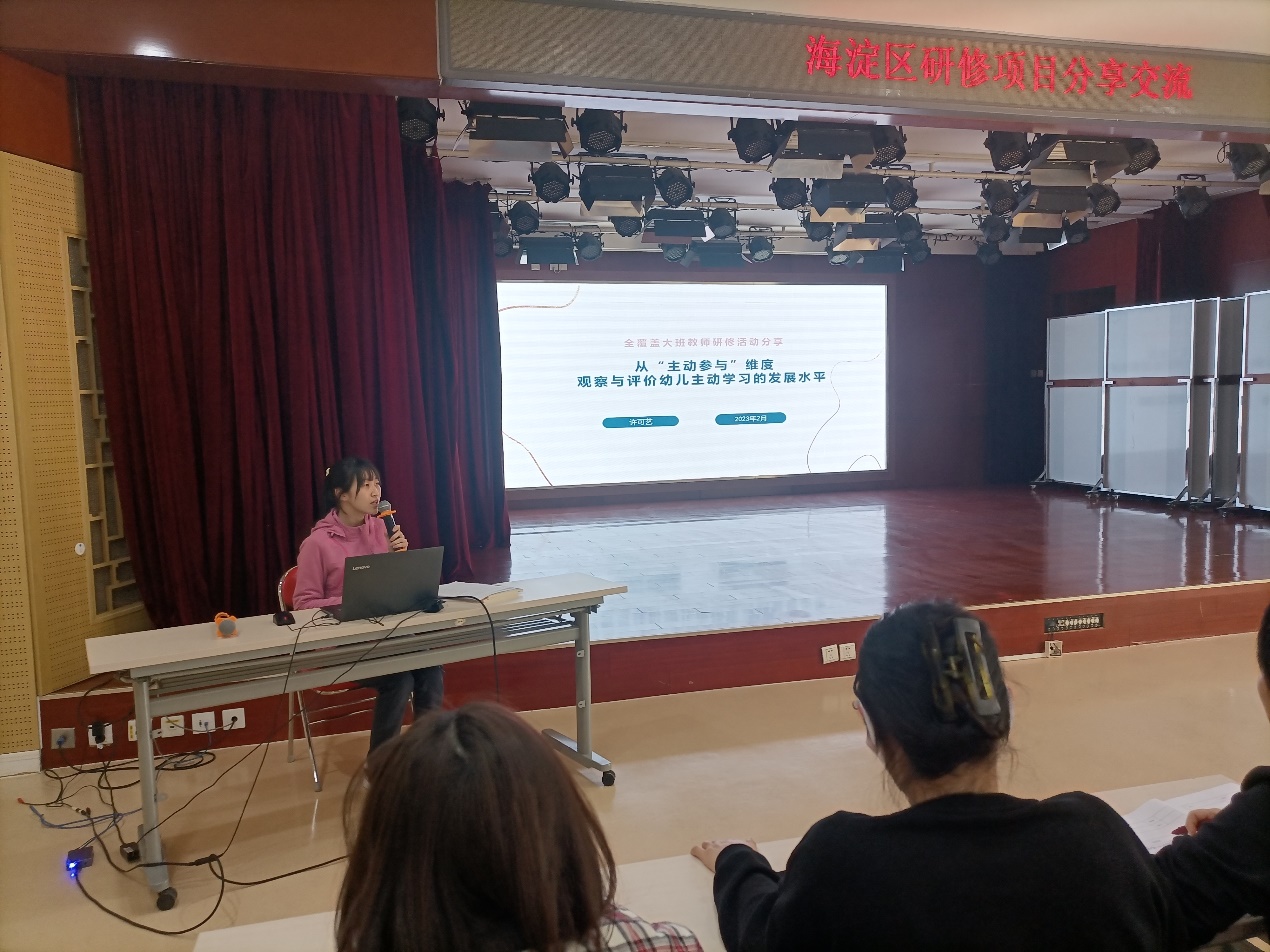 2月23日中午,王洁、孙晓慧、许可艺三位教师作为海淀区“幼小衔接”研修组的成员,在参加海淀区“学前儿童主动学习关键发展指标体系”实践研修后,将自己的学习收获与心得体会与全园班员和助理教师进行了分享。分享会由校本部园业务园长滕瑾主持,50余位教师聆听。