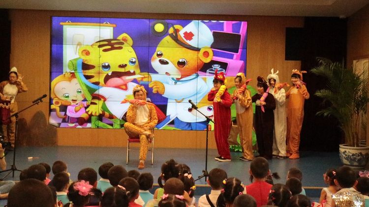 小班组的爸爸妈妈们也为小朋友带来了精彩的童话剧表演《老虎拔牙》。
