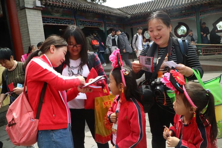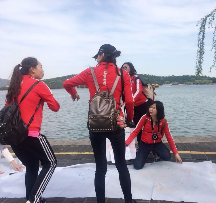 进入颐和园,先来一张充满笑容的集体照吧!