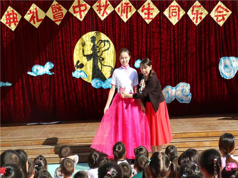 看完了精彩的演出,老师们带来了诗朗诵《水调歌头》和小合唱《但愿人长久》,富有韵律感的歌声赢得孩子们的阵阵掌声!节目结束后,任老师还为孩子们介绍了老师身上的传统服饰,盘扣、立领、刺绣,每一个细节都渗透着中国传统服饰之大美。