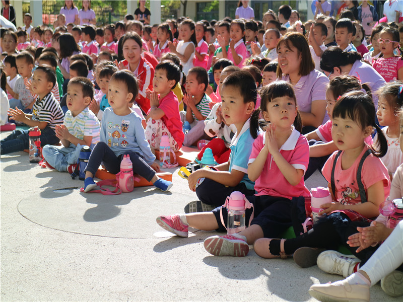 活动最后,孙园长为小朋友们送上节日的祝福,启发小朋友们感谢全体老师的辛勤付出,还在现场引导不同年龄段的幼儿用不同节奏打拍子,共同说出了不一样的"中秋节快乐"!