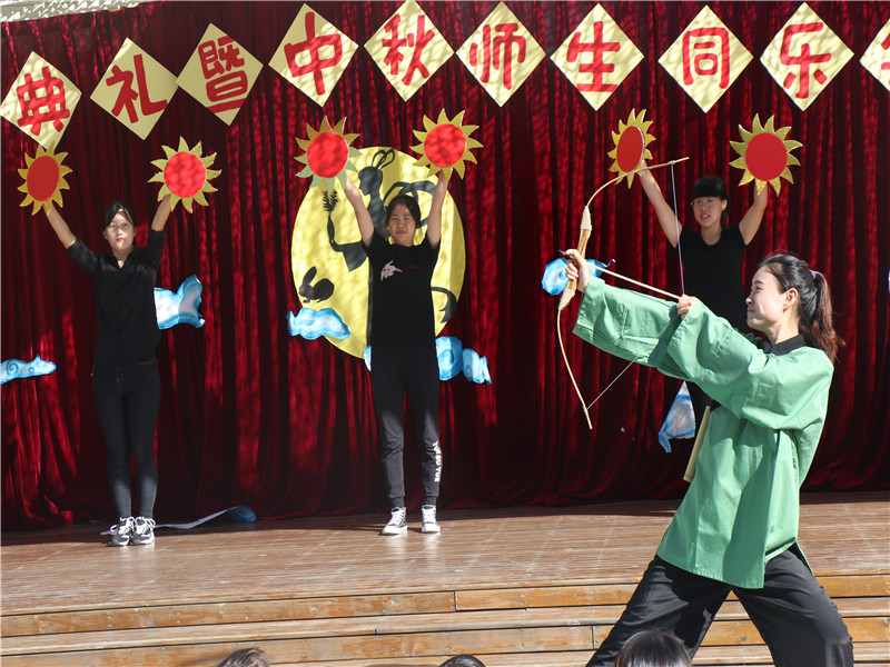 英勇射日的后羿得到了王母娘娘的长生不老仙丹交给妻子嫦娥保管,不想蓬蒙心怀不轨妄想在后羿出门时抢走仙丹,嫦娥迫不得已吞下仙丹,从此飞上月亮与后羿天各一方。精彩的演出引得孩子们一个个看得神情专注,当发现飞上天空的嫦娥时,还有孩子忍不住默默流泪,向嫦娥挥手再见。